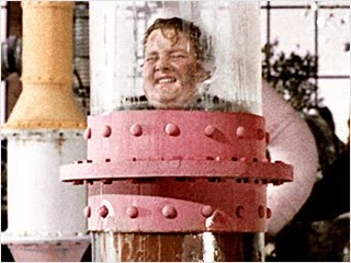 Wonka is not necessarily evil; he just has a very messed up scale of morality where he designs his tour to try and tempt each children with a karmic fate to evaluate if they are worthy of living or not by setting up traps or gambits which kills them. Augustus Gloop can't control his gluttony when he gets to the Chocolate Room and falls into the chocolate river, and is sucked up a large pipe. That's a fairly large pipe. Large enough for a Human being. Why would you make it that big for the chocolate river? Wonka set it up so that children are easily transported throughout the factory through these pipes to the various rooms. We see a similar mechanic again with the Nut Room, where there is a large tube that connects to an incinerator. The Nut Room has a bunch of squirrels testing walnut out to see if they are a "bad nut". Veruca Salt wants to have one of the squirrels, but Wonka denies her the request, so she tries to take one for herself. Wonka hardly tries to hide his murderous intents with this one and Veruca is thrown into the chute by the entire squirrel squad. The squirrels are trained to work together in dragging people into the chutes, apparently.