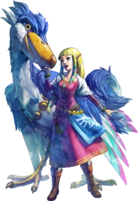 Skyward Sword has several noticeable romantic moments between Link and Zelda. Early in the game, Zelda wants Link to be the first to see her outfit for the Wing Ceremony. She worries over him and she does not want him to fail at becoming a knight. When Link's Crimson Loftwing is hidden by Groose, Zelda assists Link in finding his Loftwing. After Link wins the Wing Ceremony, Zelda jumps off the ledge and Link catches her almost as if she was expecting him to. She then congratulates him on winning. Afterwards, Zelda mentions that she is very happy to be atop the Statue of the Goddess with him. She also gets extremely close to him and almost implies that the two are to kiss, before she pushes him off the statue. Afterward, Zelda bashfully asks Link to go out flying which they do. She then tells Link how amazing the day was, and that she would remember it forever. At the Temple of Hylia, when Zelda states she must seal herself to keep Demise in place, she sheds tears of sadness and states before all this, she was happy just being with Link on Skyloft, demonstrating a deep level of feelings for Link. Link desperately tries to stop her and when she is sealed, Link lowers his head in sadness, showing his deep feelings for her. Much later in the game, when Link releases Zelda from her sealed state, Link runs up and catches her from falling and both of them hug and walk out smiling at each other, holding hands, before Ghirahim ruins the tender moment. During the ending, Zelda asks what Link will do now. Link sweetly smiles at her while their Loftwings fly off toward the sky, implying that he chose to stay on the Surface to live with Zelda.