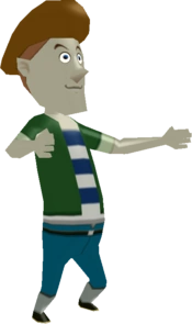 A character named Purlo appears in The Legend of Zelda: Twilight Princess. Purlo is possibly a reference to what Tingle would look like if he was a more realistic character. Purlo is the manager of the STAR Game in Hyrule Castle Town, and he wears a similar costume to Tingle. He is also obsessed with Rupees, much like Tingle. Unlike Tingle though, Purlo has an unfriendly attitude towards others.