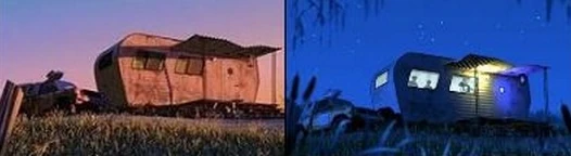 Look at the picture above. On the left is the trailer from A Bug’s Life and the one on the right is from Monsters Inc. The one on the left looks older and more rundown. Even the vegetation is noticeably dryer and there’s less of it. The trailer on the right has humans and the frame even includes tall grass and a tree hanging overhead.